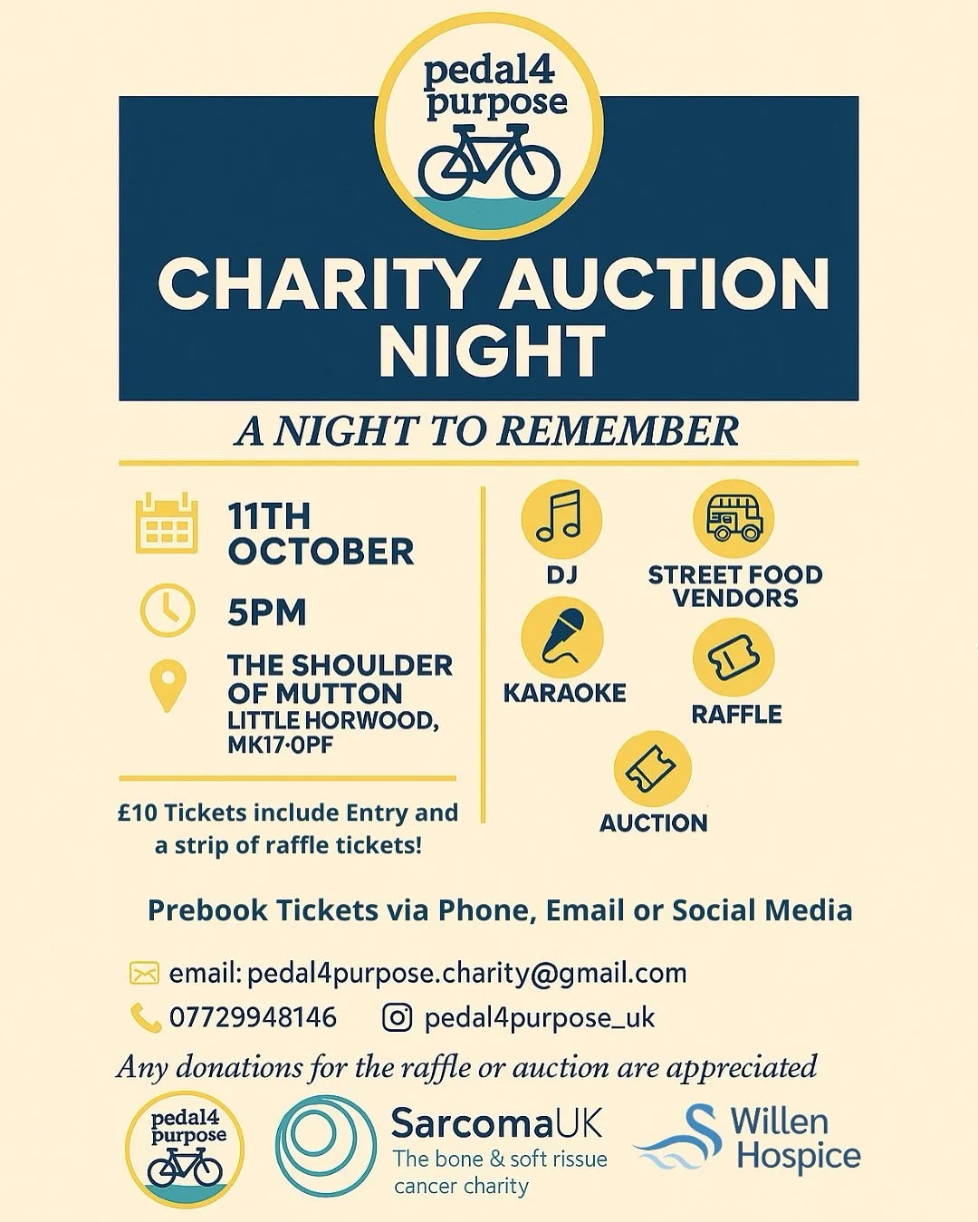 All proceeds will be added to our just giving page where all the money raised is being split evenly between Sarcoma UK & Willen Hospice – come have fun while making a difference! 🌟
